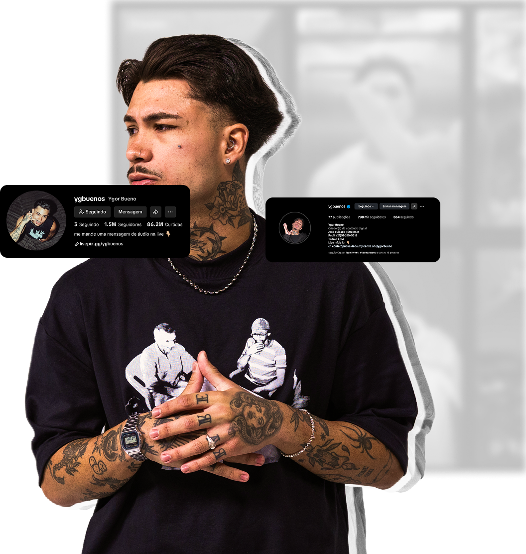 Ygor Bueno é um criador de conteúdo brasileiro que vem conquistando cada vez mais espaço nas redes sociais com sua autenticidade e presença marcante. Nascido em São Paulo, em 2001, ele iniciou sua trajetória compartilhando vídeos descontraídos no TikTok — misturando humor, lifestyle, cuidados pessoais e rotina de academia. Sua forma leve e verdadeira de se comunicar rapidamente chamou a atenção de milhares de pessoas, transformando seguidores em uma comunidade fiel.